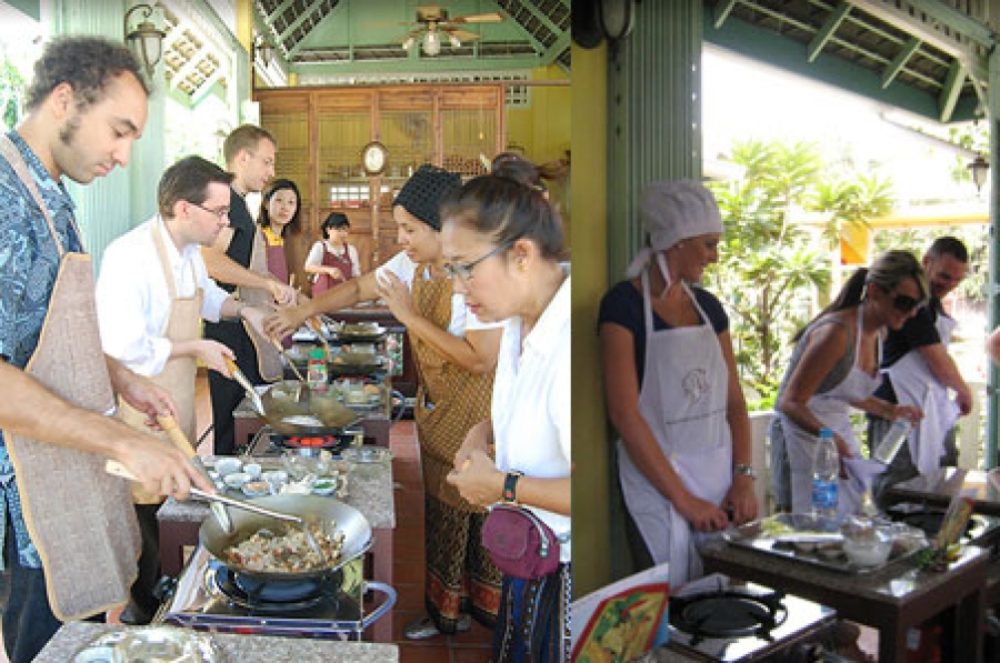 Classes are completely hands-on, encouraging you to practice Thai cooking techniques. Our instructors will introduce you to Thai cuisines and explain the four delicious dishes you will be cooking, before leading you through our nursery herb garden to pick first-handedly fresh Thai ingredients for your dishes. Among the plant varieties found in the school's garden are guinea pepper, holy basil, kaffir lime, piper sarmentosum, plate brush and Thai basil.